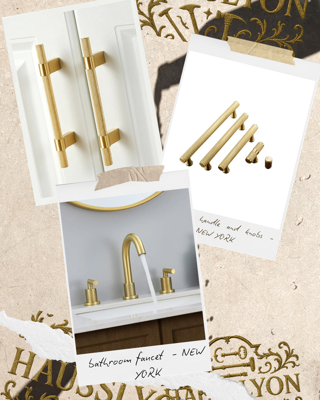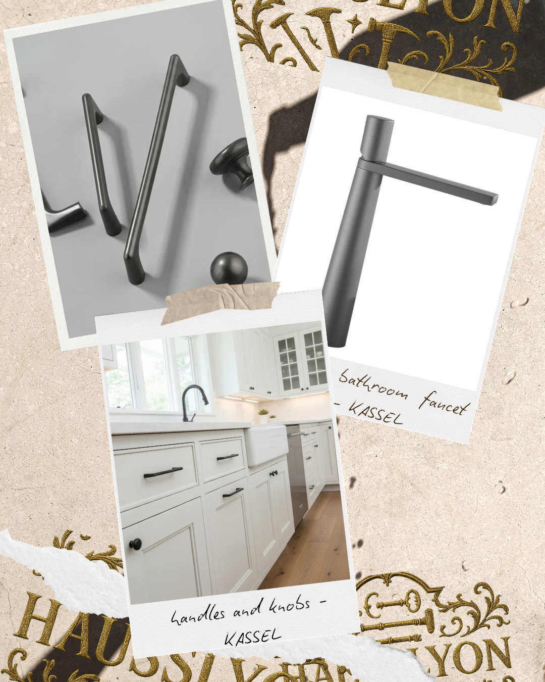 Une sélection de robinets de cuisine, de robinets de salle de bain, de poignées de porte et d’armoire organisée en ensembles.